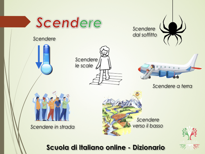 Muoversi da un luogo situato più in alto verso uno posto più in basso